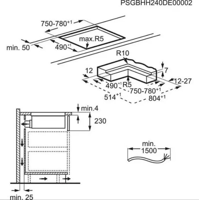 AEG TH84CB03CB - схема с размерами к варочной панели на разных языках на Hausdorf