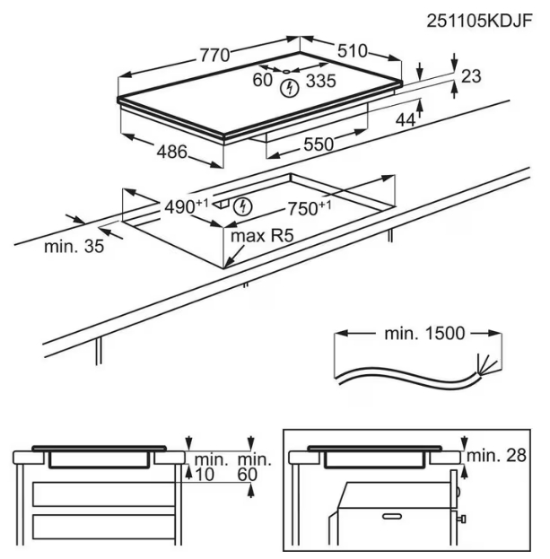 AEG TH85IM30FB - схема с размерами версия 2 к варочной панели на разных языках на Hausdorf