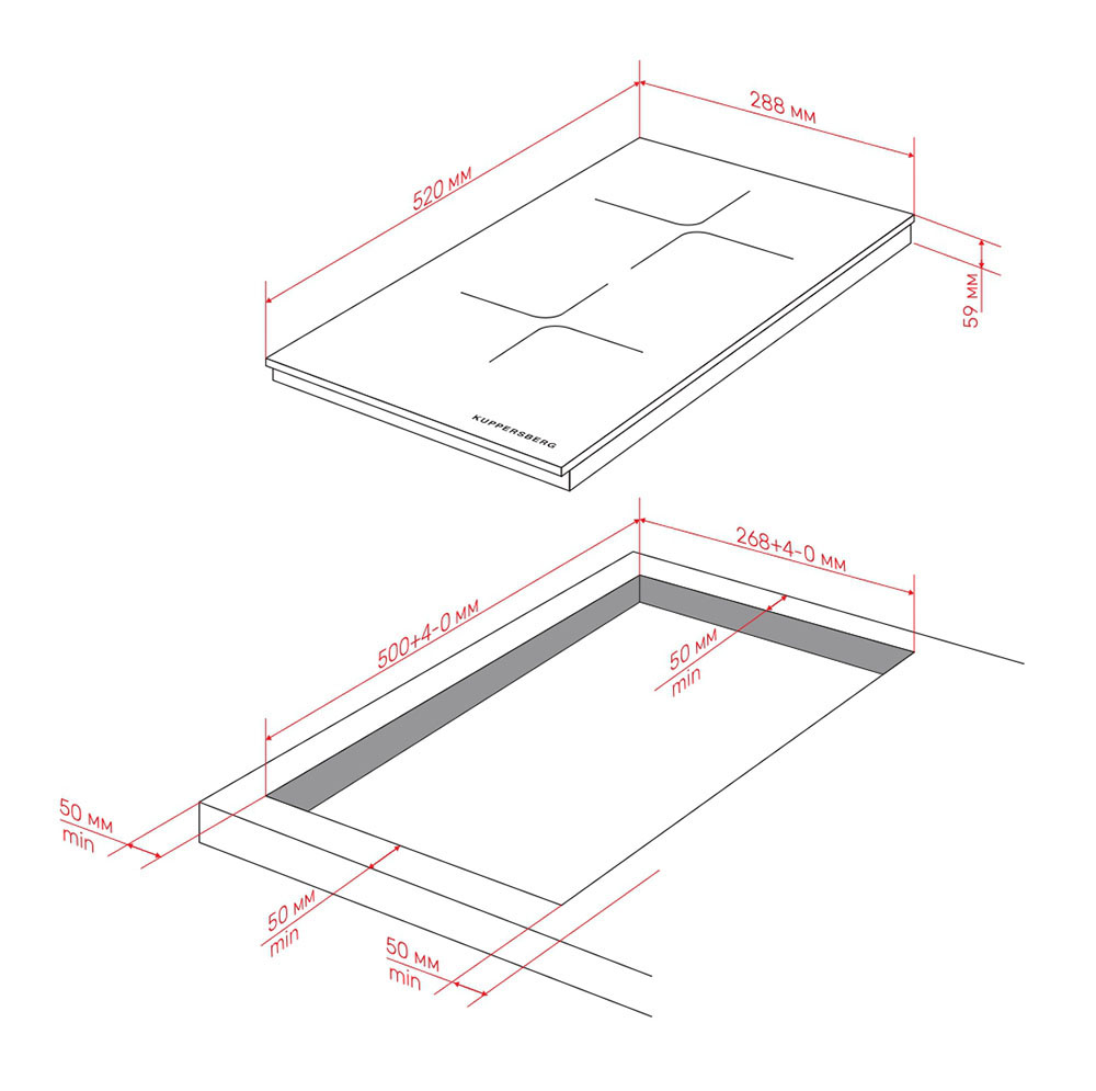 Kuppersberg ICI 306 - схема встраивания к варочной панели на разных языках на Hausdorf