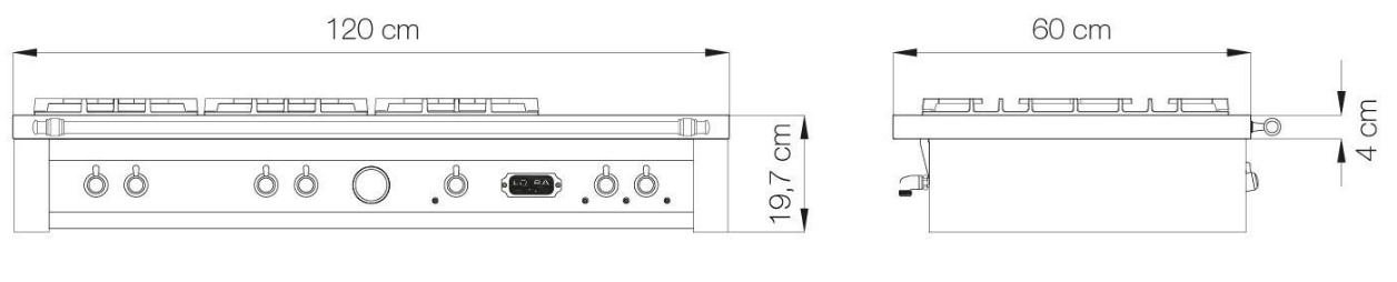 Lofra TRS126/5C BRONZE - схема с размерами к варочной панели на разных языках на Hausdorf