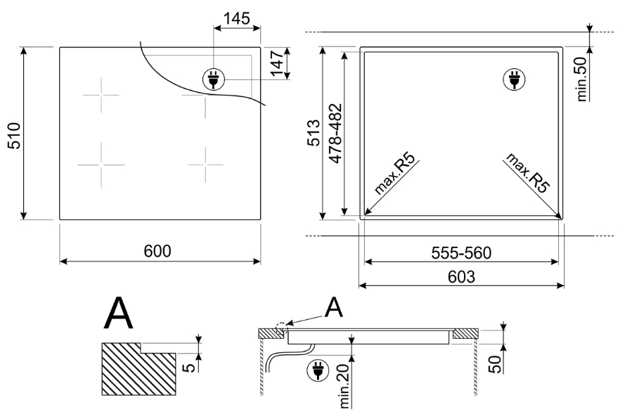 Smeg SI2M5643D1 - схема с размерами версия 2 к варочной панели на разных языках на Hausdorf