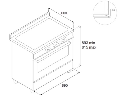 Bertazzoni HER95I1EXT2 - схема с размерами версия 3 к варочному центру на разных языках на Hausdorf
