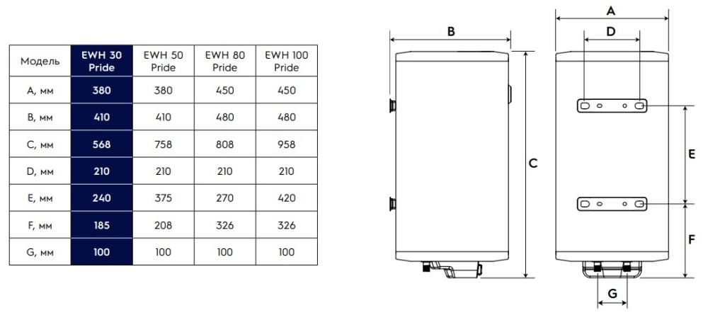 Electrolux EWH 50 Pride - схема с размерами версия 2 к водонагревателю на разных языках на Hausdorf
