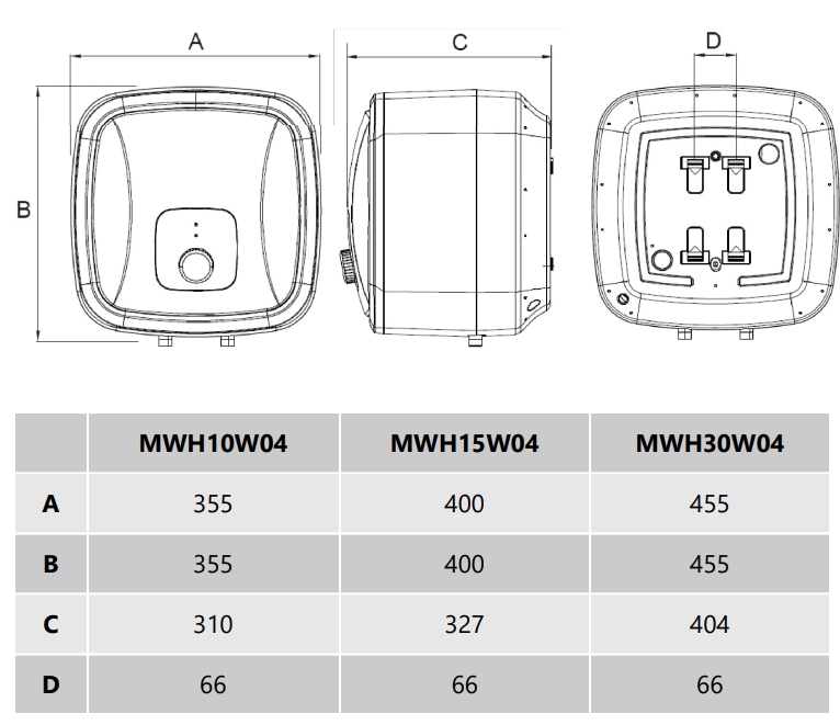 Maunfeld MWH15W04 - схема с размерами версия 2 к водонагревателю на разных языках на Hausdorf
