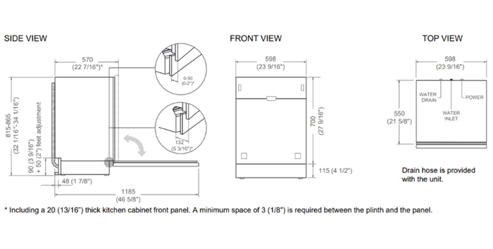 Bertazzoni DW60S3IAPSC - схема с размерами версия 2 к посудомоечной машине на разных языках на Hausdorf
