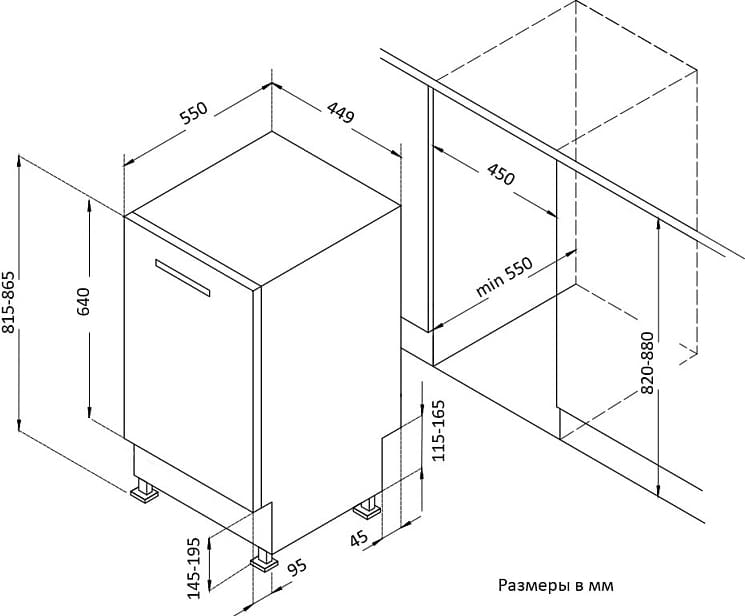 Korting KDI 45984 - схема встраивания к посудомоечной машине на разных языках на Hausdorf