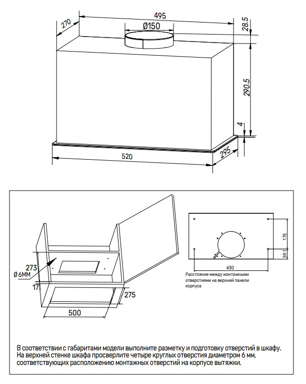 Kuppersberg INLUMIA 60 WG - схема с размерами версия 2 к вытяжке на разных языках на Hausdorf