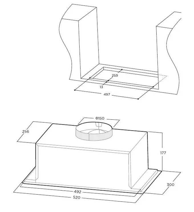 Midea MH60I301B - схема с размерами версия 2 к вытяжке на разных языках на Hausdorf