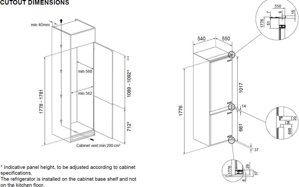 Bertazzoni REF603BBNPTC - схема встраивания к холодильнику на разных языках на Hausdorf