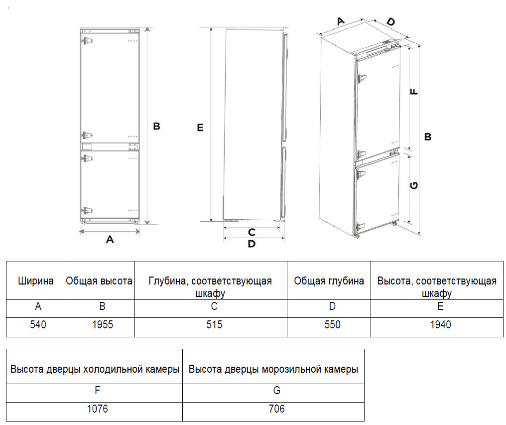 Graude IKG 200.3 - схема встраивания к холодильнику на разных языках на Hausdorf