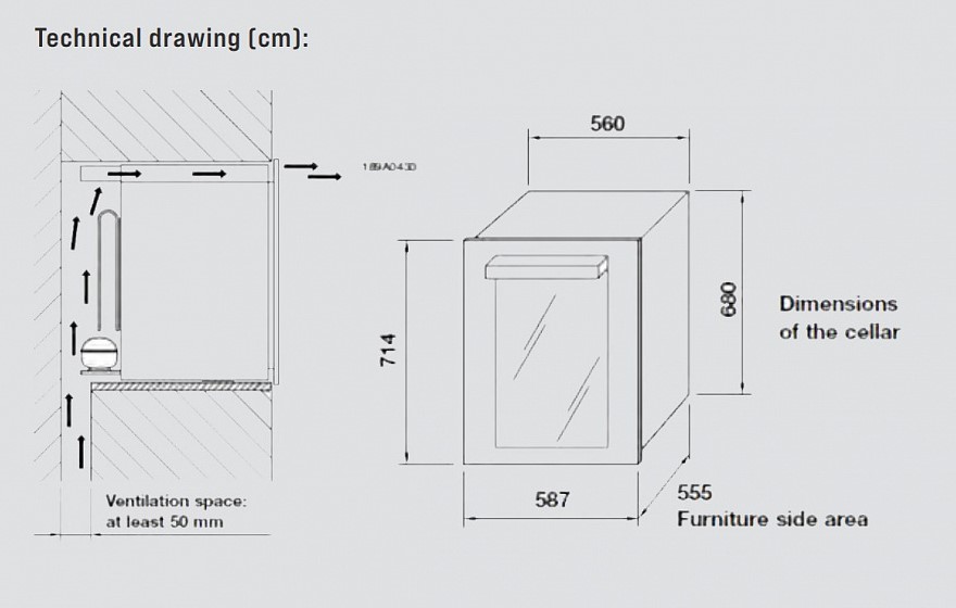 Lofra ZBRBI36T BRASS две зоны - схема с размерами к винному шкафу на разных языках на Hausdorf
