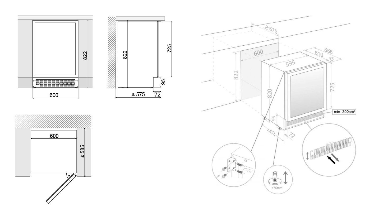 Pando PVMBP 60-44CRL - схема встраивания к винному шкафу на разных языках на Hausdorf