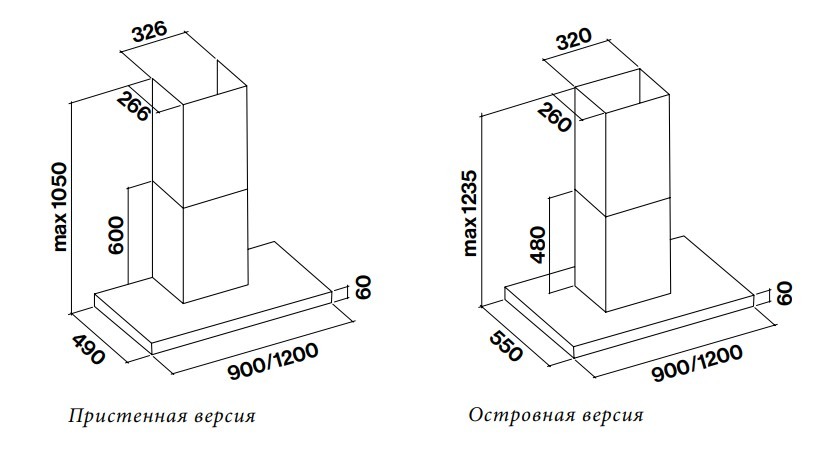 Falmec PLANE STEEL 90 (PLUS) CPLN90.E23P2#ZZZI490F - схема с размерами к вытяжке на разных языках на Hausdorf