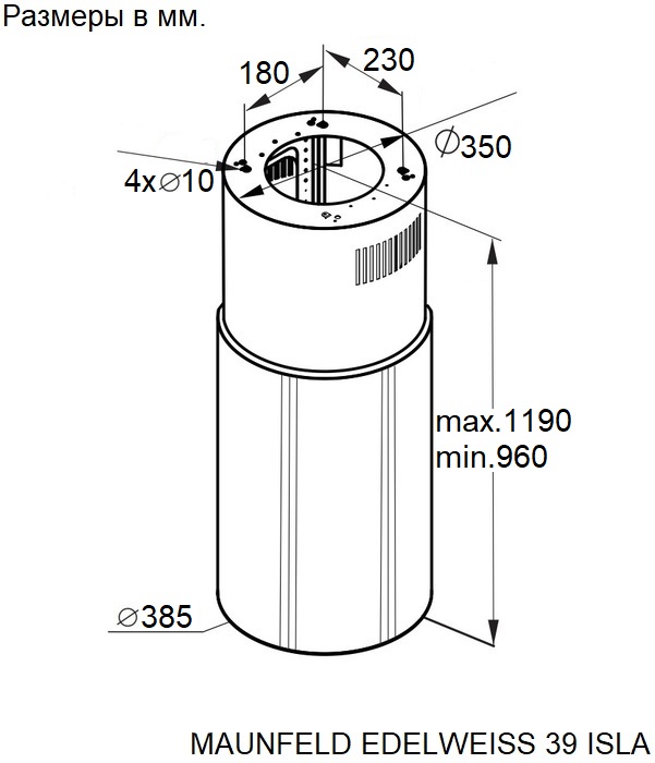 Maunfeld EDELWEISS 39 ISLA White - схема с размерами версия 2 к вытяжке на разных языках на Hausdorf
