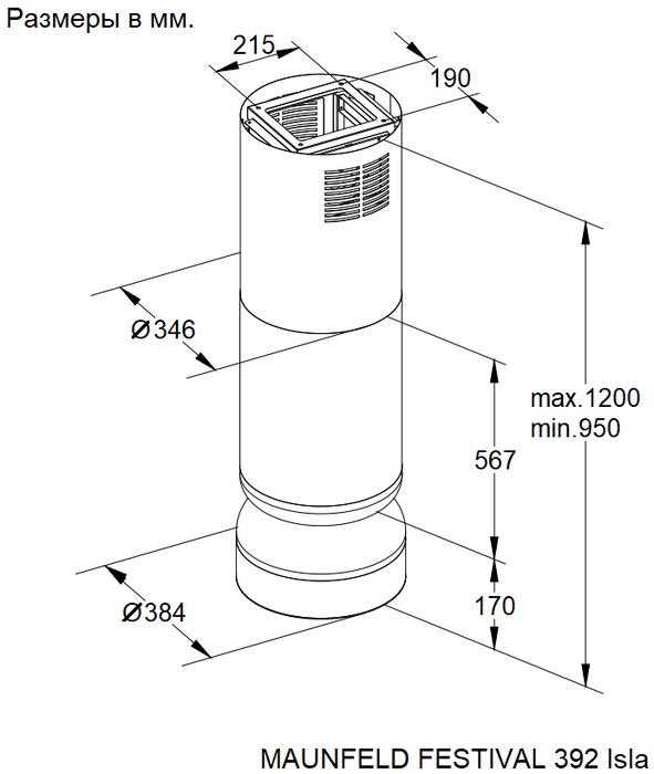 Maunfeld FESTIVAL 392 Isla Burgundy - схема с размерами версия 2 к вытяжке на разных языках на Hausdorf
