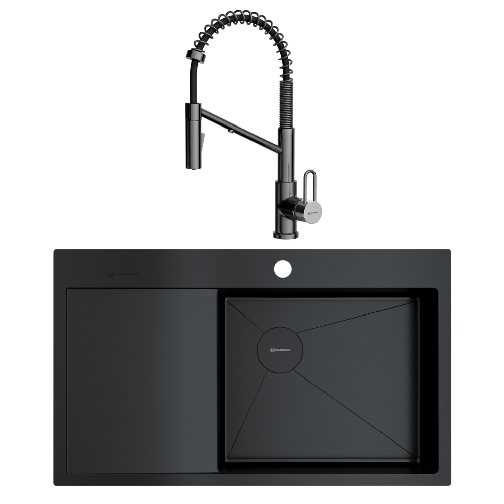 Комплект Omoikiri (мойка AKISAME 86 SIDE GB-R + смеситель MIKAWA 2 PLUS-SB GB) в Санкт-Петербурге